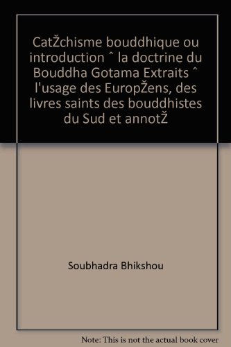 View and read PDF Download Catéchisme bouddhique ou introduction à la doctrine du Bouddha Gotama Extraits à l'usage des Européens, des livres saints des bouddhistes du Sud et annoté pdf ebook free online before you decide to download by ... Read and ... Download PDF Catéchisme bouddhique ou introduction à la doctrine du Bouddha Gotama Extraits à l'usage des Européens, des livres saints des bouddhistes du Sud et annoté Free free pdf ...